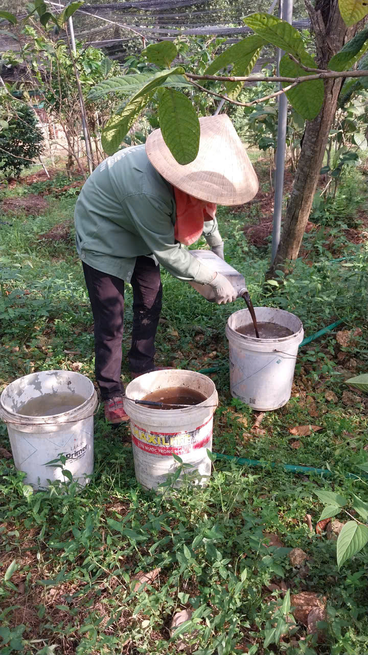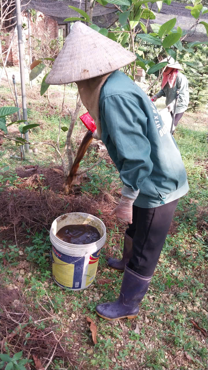 | 95 | Bón Thúc - Tiến hành bón phân cho cây Trà Hoa Vàng. Sử dụng phân hữu cơ LUCAVI dạng dung dịch - Lượng bón: • Cây nhỏ: tưới 100ml dung dịch phân bón • Cây nhỡ: tưới 150ml dung dịch phân bón - Cách bón: Tưới gốc quanh gốc trà bằng dung dịch phân bón đậm đặc, sau đó tưới nước để phân ngấm dần vào đất. Tổng dung lượng bón cho toàn bộ vườn trà là 120 lít dung dịch Lucavi. |