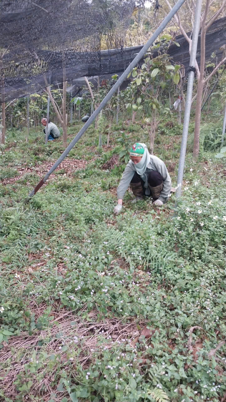 | 82 | Làm cỏ - Tiến hành làm sạch cỏ dại cho một số khu vực của vườn bằng biện pháp làm cỏ thủ công, đặc biệt là những khu vực xung quanh gốc trà. |