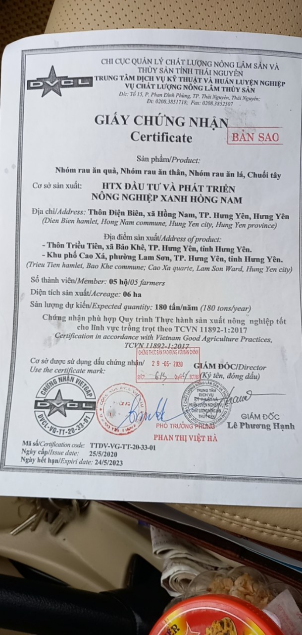 | Cơ sở sản xuất | HTX Đầu tư và Phát triển NN xanh Hồng Nam |